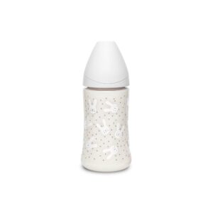 Biberón premium de poliamida con tetina redonda tres posiciones de silicona con capacidad de 270 ml. La tetina redonda 3 posiciones, se adapta a la necesidad del bebé y al tipo de alimento ya que, tan sólo girando el biberón, permite regular la intensidad de la salida de líquido, garantizando una correcta succión desde el primer día. Biberón fabricado en poliamida, material tan transparente como el vidrio y resistente como el plástico. Muy ligero y manejable. Tetinas de biberones avaladas por la Sociedad Española de Odontopediatría (SEOP) y, aconsejadas por la Asociación de Especialistas Italianos en Ortodoncia (ASIO). Fabricada en silicona médica, material altamente resistente e indeformable que no altera su color ni olor. La válvula anticólico en la base de la tetina evita las molestias, como el hipo y los cólicos, que pueden derivarse de la ingesta de aire. Todos los productos de Suavinex están libres de Bisphenol A.