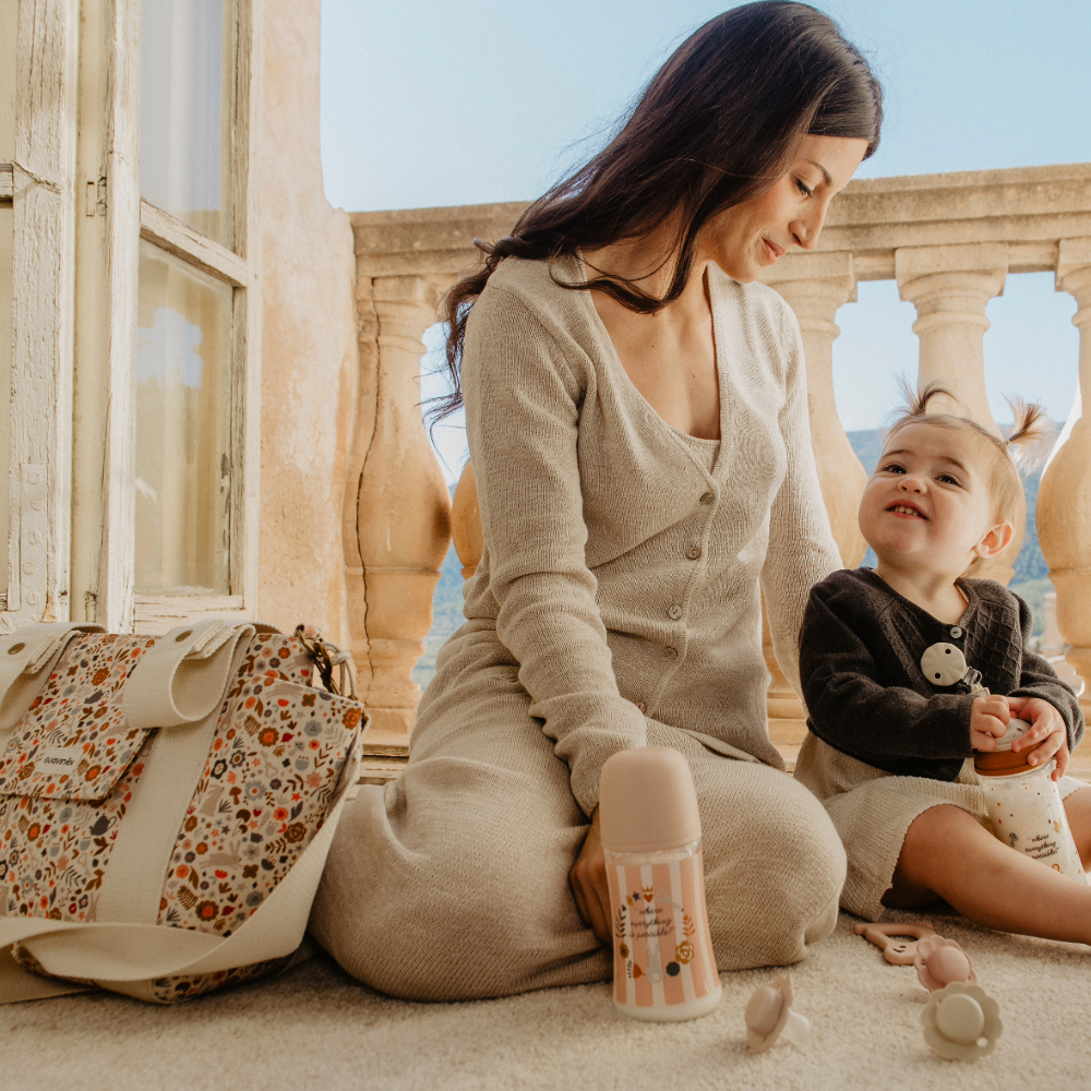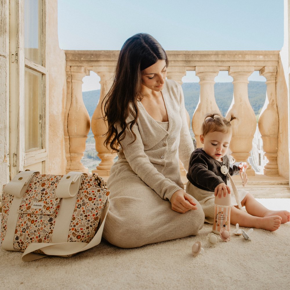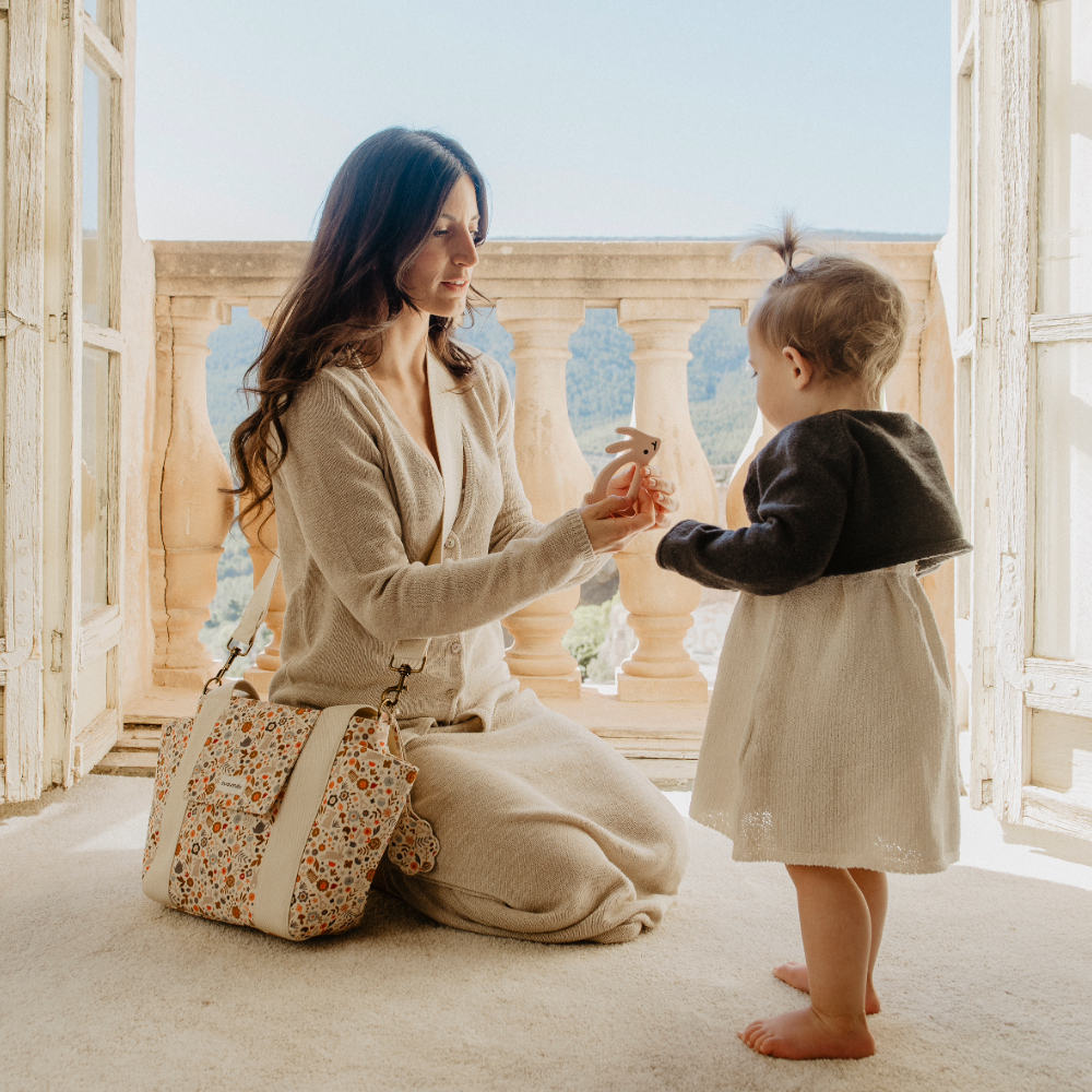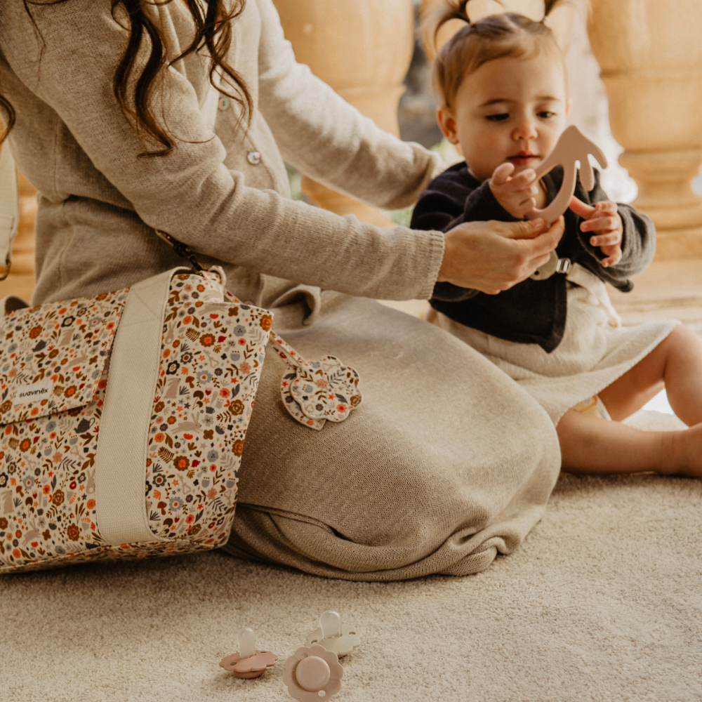 - CON BOLSILLOS EXTERIORES. El bolso – panera cuenta con 3 bolsillos exteriores: 1 bolsillo pequeño con solapa de imán + 2 bolsillos laterales grandes, con capacidad para el biberón, la botella de agua, el tarrito o las toallitas