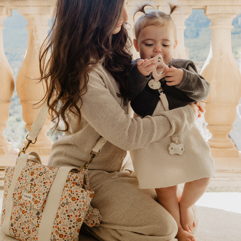 - SUJECIÓN SEGURA Y RESISTENTE. El asa cuenta con broches metálicos a presión para ajustar el bolso al manillar del cochecito o la sillita de paseo. El bolso tiene mosquetones metálicos para poder poner y quitar el asa
