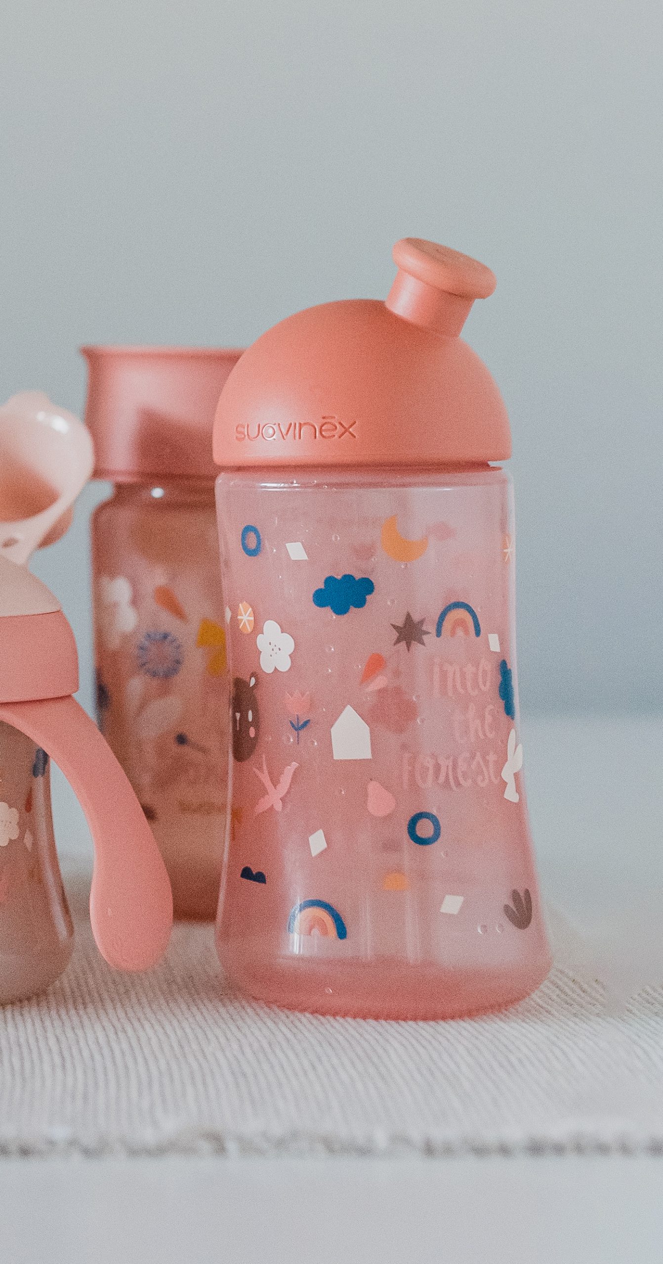 Biberón con asas antiderrame con boquilla de silicona para bebés a partir de 4 meses. Gracias a su boquilla de silicona suave y blandita, facilitaráel tránsito de tu bebé del biberón al vaso ya que el líquido solo sale cuando tu bebé succiona. Sus asas de quita y pon aportan independencia mientrasque su forma ergonómica está pensada para manitas pequeñas. Capacidad 270 ml.Todos los productos Suavinex no contienen Bisphenol A.