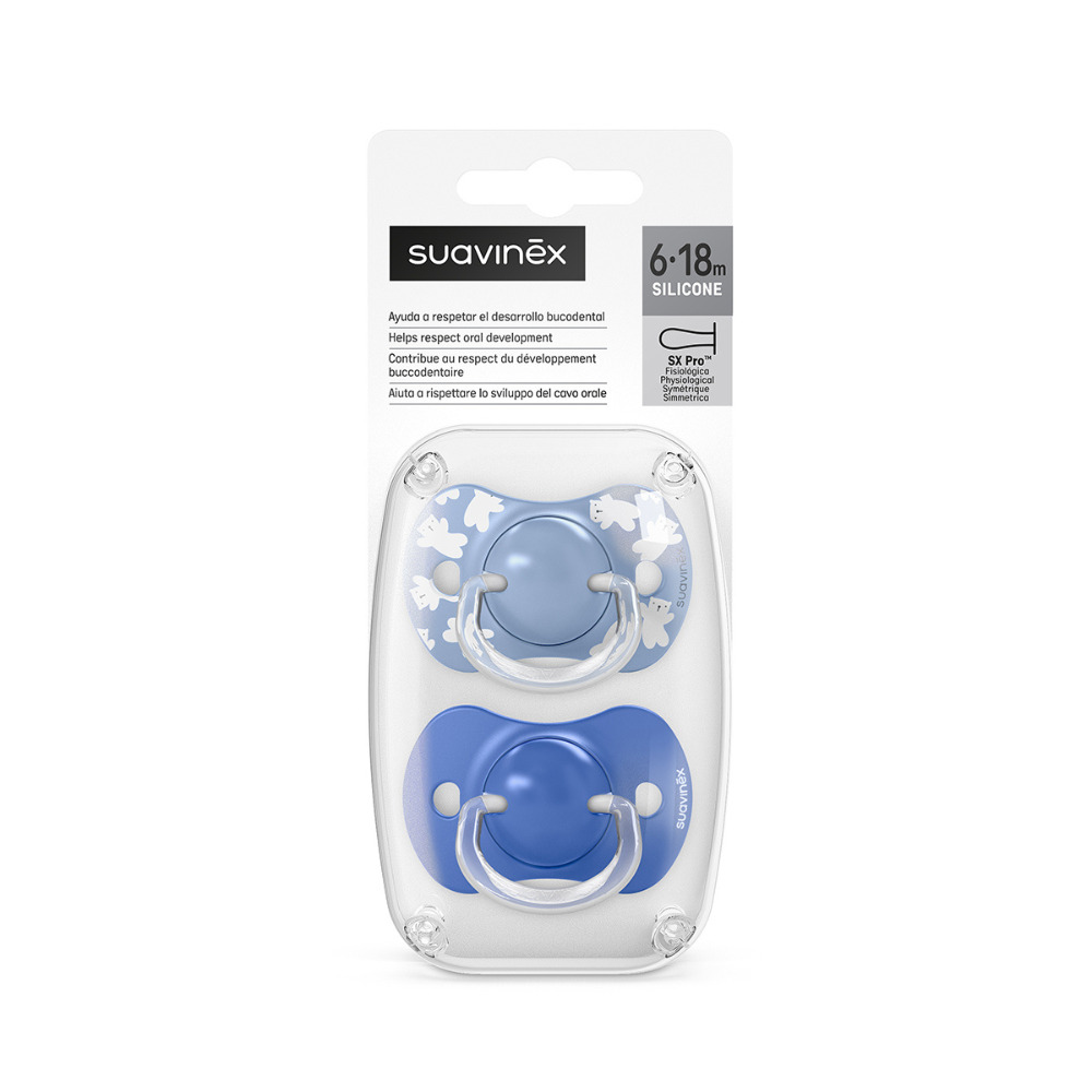 Chupones con tetina fisiológica SX Pro™, The Teat Revolution! Las Tetinas de Suavinex están avaladas por la Sociedad Española de Odontopediatría, SEOP y, aconsejadas por la Asociación de Especialistas Italianos en Ortodoncia, ASIO.