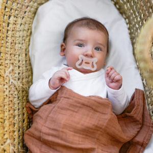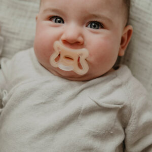 Chupón con tetina fisiológica SX Pro, diseñado para respetar el desarrollo bucodental del bebé. La tetina de este chupete ha sido diseñada para no invadir la cavidad oral y proporcionar al bebé la misma sensación que experimenta en su estado natural cuando no lleva chupete.