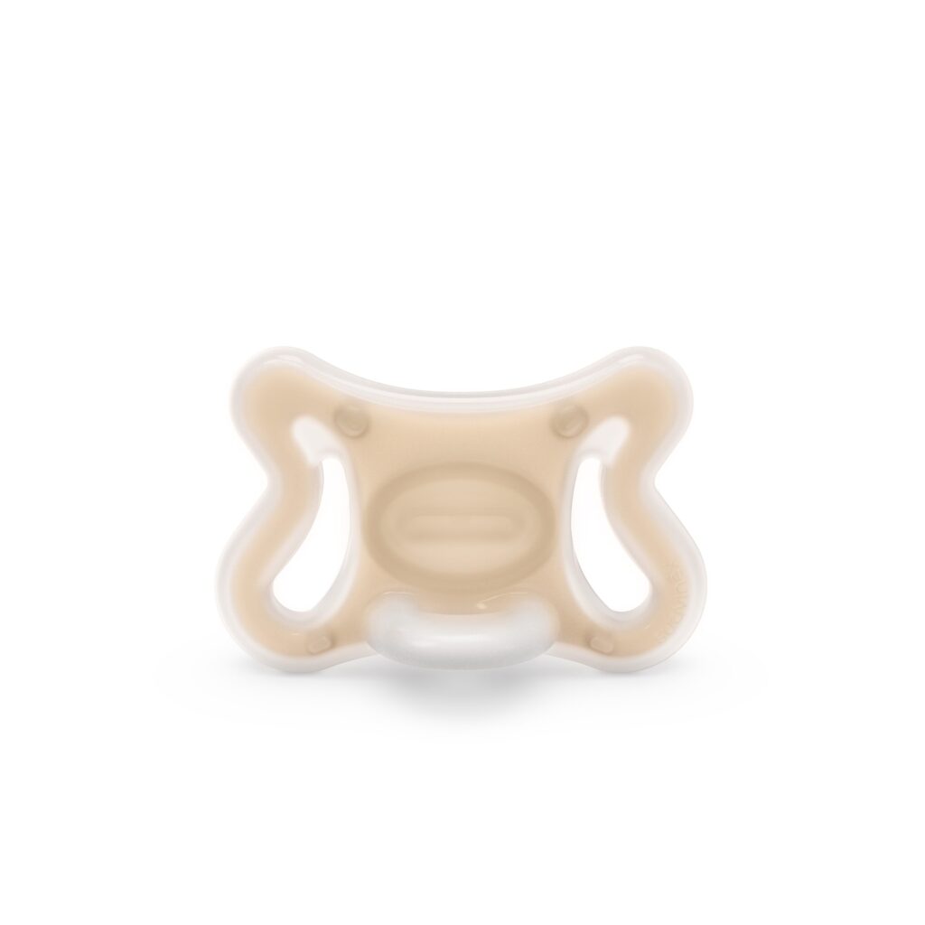 Chupón con tetina fisiológica SX Pro, diseñado para respetar el desarrollo bucodental del bebé. La tetina de este chupete ha sido diseñada para no invadir la cavidad oral y proporcionar al bebé la misma sensación que experimenta en su estado natural cuando no lleva chupete.