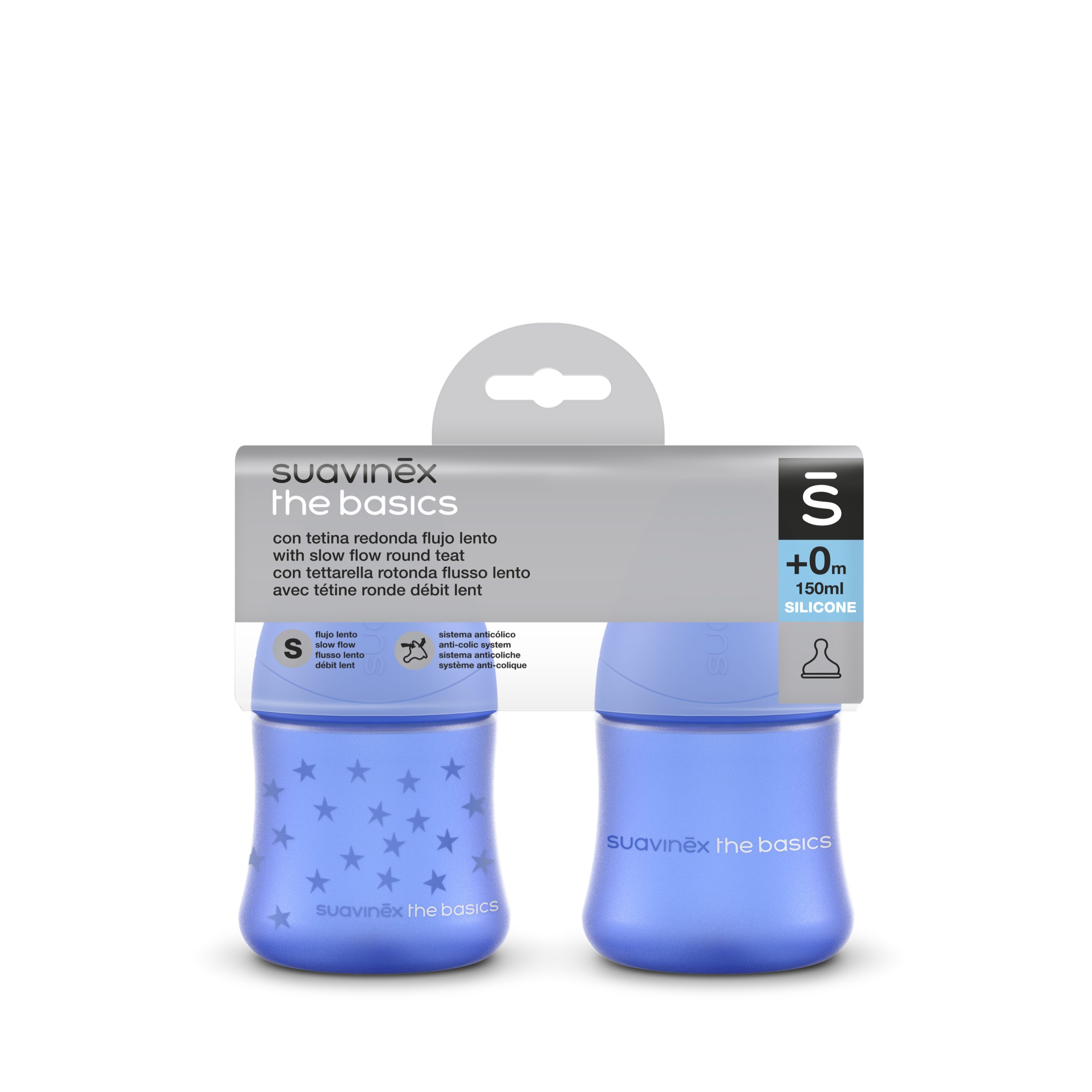 Set 2 biberones anticólicos para bebés con tetina redonda tres posiciones silicona. Capacidad 150 ml-9 onzas.
