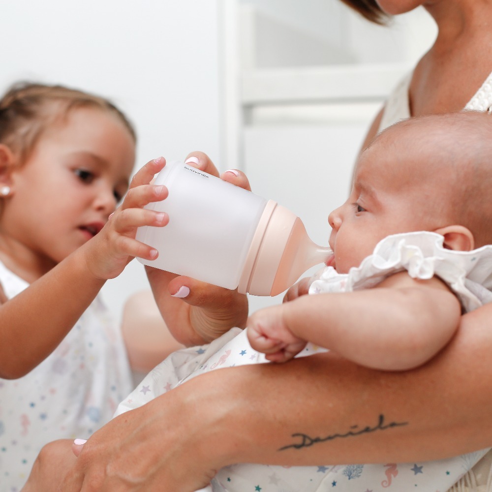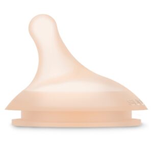 El diseño de la tetina se basa en estudios científicos y recrea condiciones similares a las de la lactancia natural en términos de agarre, esfuerzo y succión. En lugar de esperar a que la leche fluya por sí sola, el bebé tendrá que hacer un esfuerzo para chupar el biberón, al igual que cuando toma el pecho.