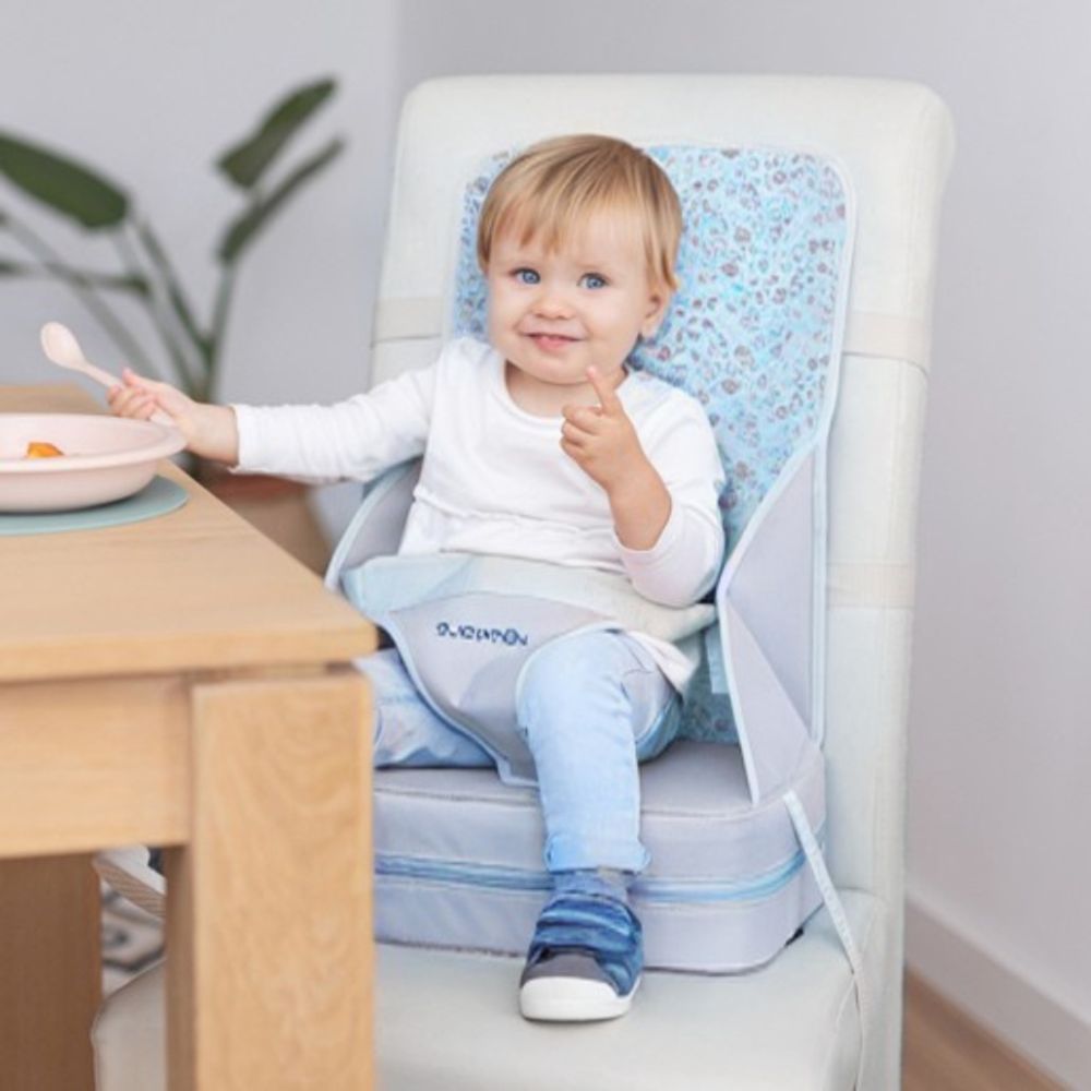 La silla de comer portátil para que los más niños puedan sentarse a comer en la mesa junto a los adultos. ¡Puede colocarse prácticamente en cualquier silla!