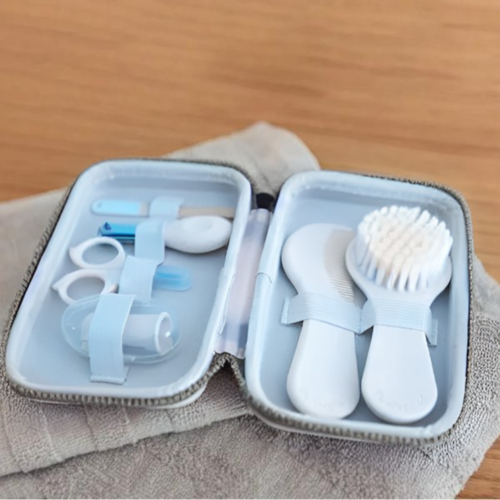 Set de Manicura para bebé de 6 piezas (+0 M.); Cepillo, Peine, Cepillo dental, Tijeras, Lima, Cortaúñas y Neceser. Set Neceser para bebés con 6 productos esenciales para facilitar el cuidado diario y delicado que el bebé necesita desde el primer día.